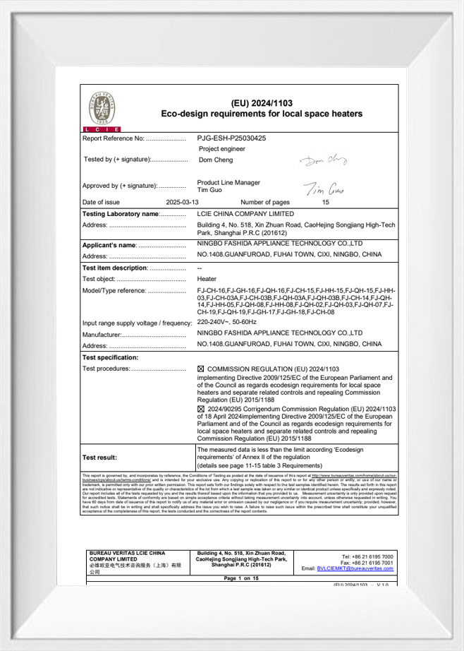 (EU)2024/1103 本地空间加热器的生态设计要求